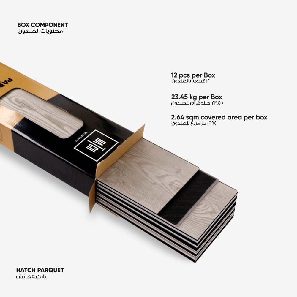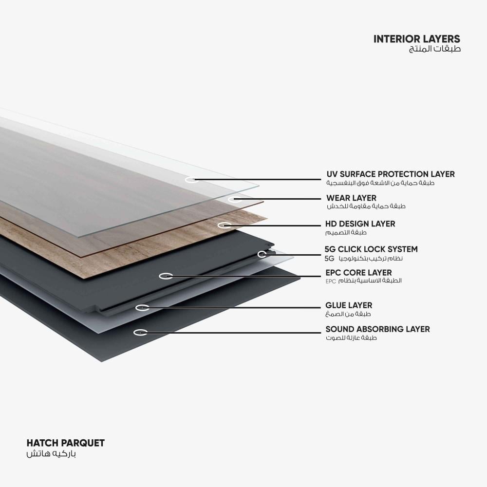 ملاحظة: نمط اسطح الباركية قد يختلف من لوح إلى آخر ليحاكي جمالية الخشب الطبيعي.