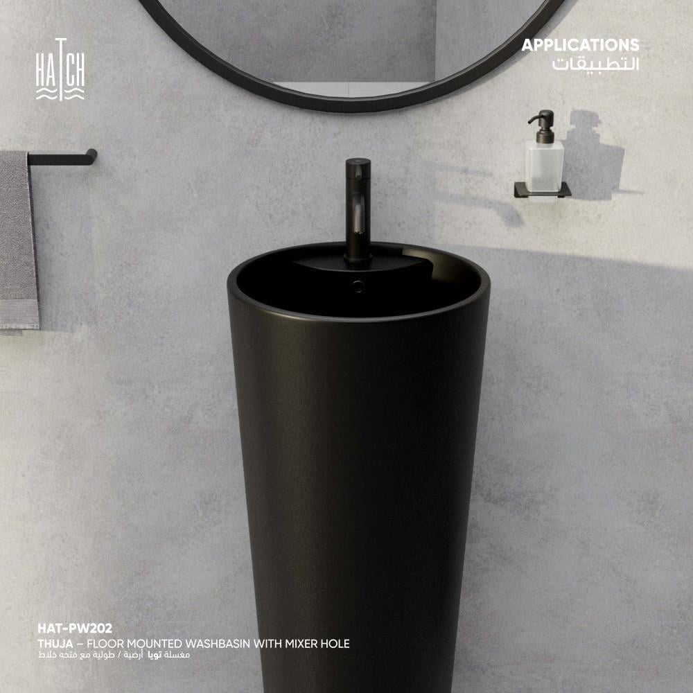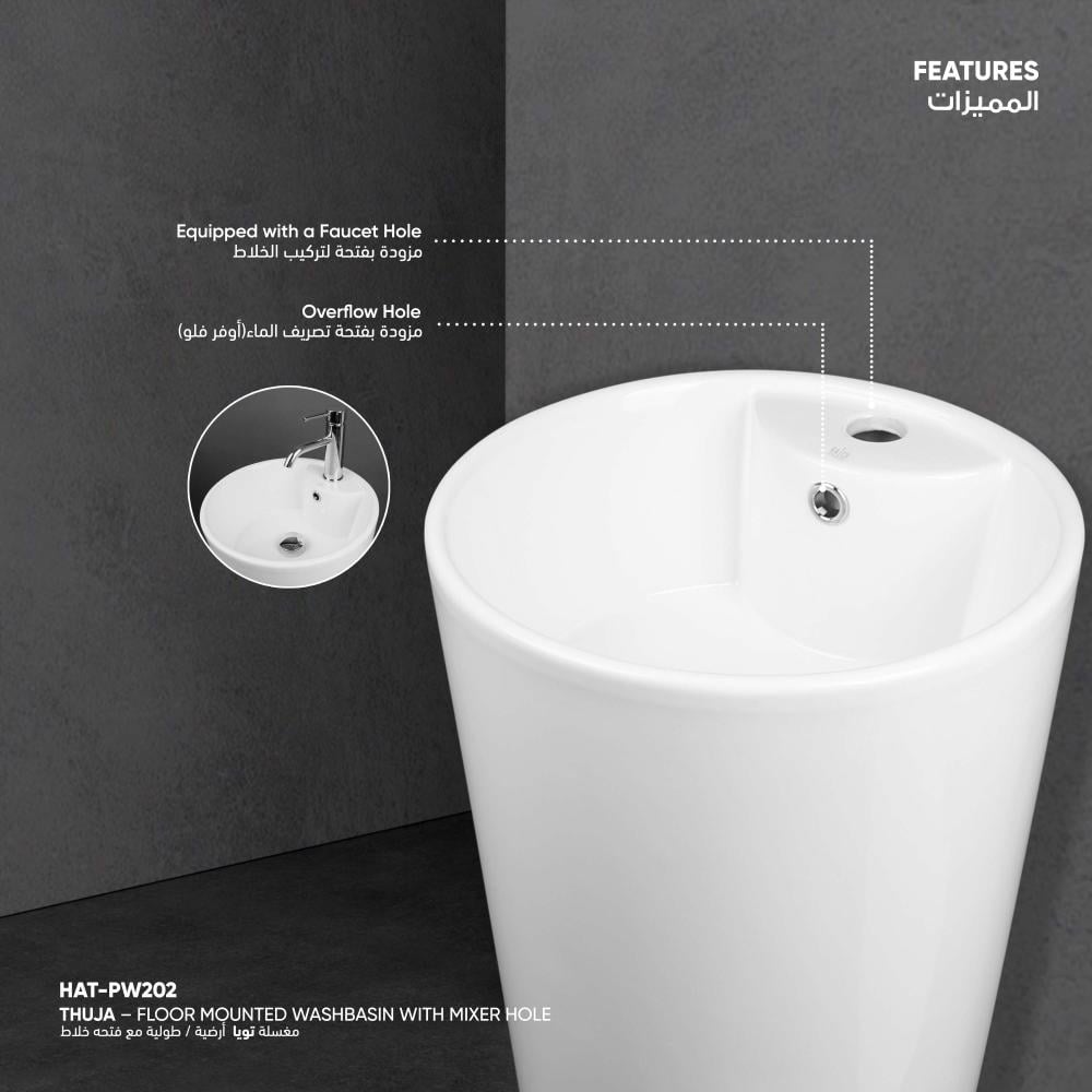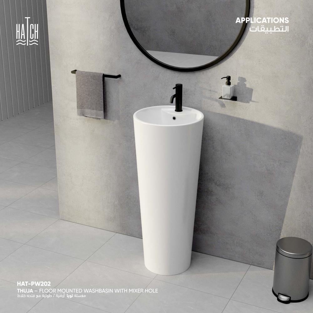 • مزودة بفتحة لتركيب الخلاط لتسهيل التركيب ومنح مظهر متناسق وانسيابي مع باقي عناصر دوره المياه .