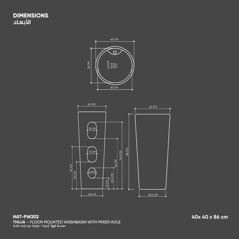 مغسلة تويا أرضية / طولية مع فتحه خلاط