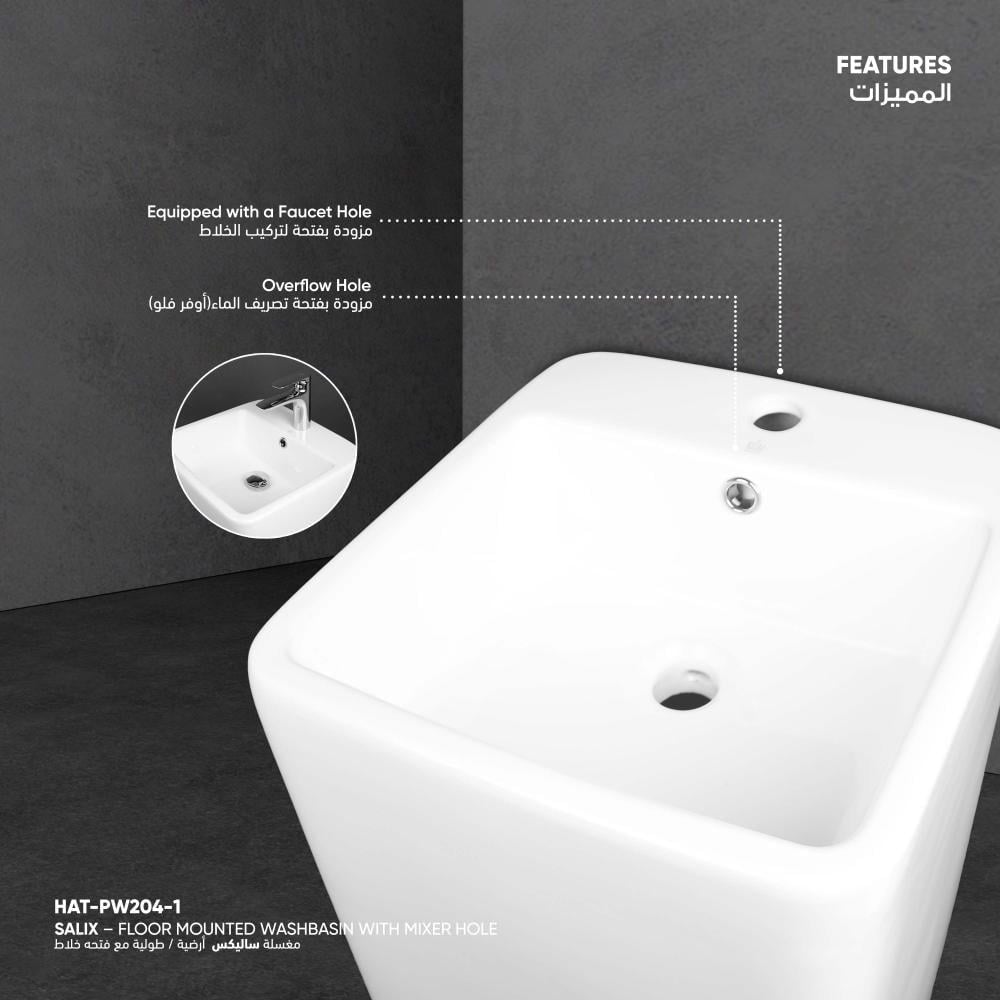 - مزودة بفتحة لتركيب الخلاط لتسهيل التركيب ومنح مظهر متناسق وانسيابي مع باقي عناصر دوره المياه .