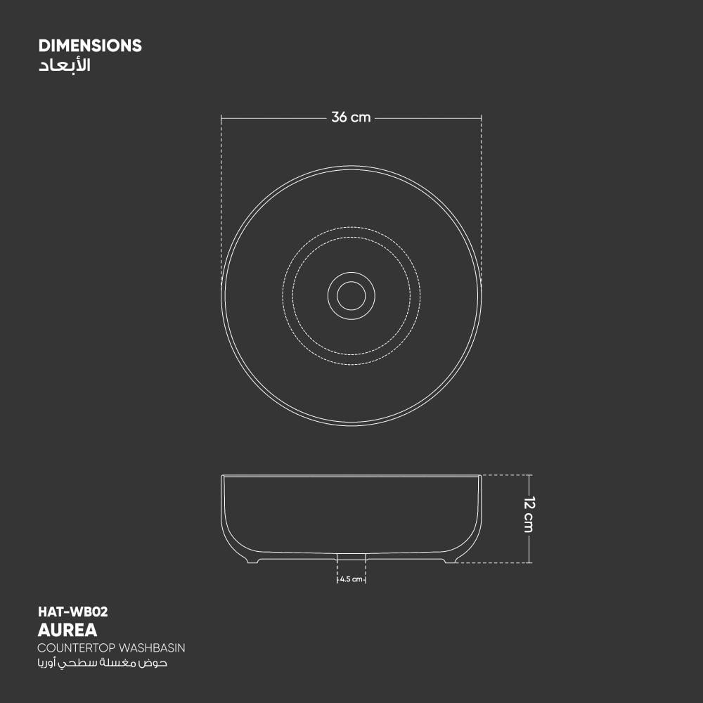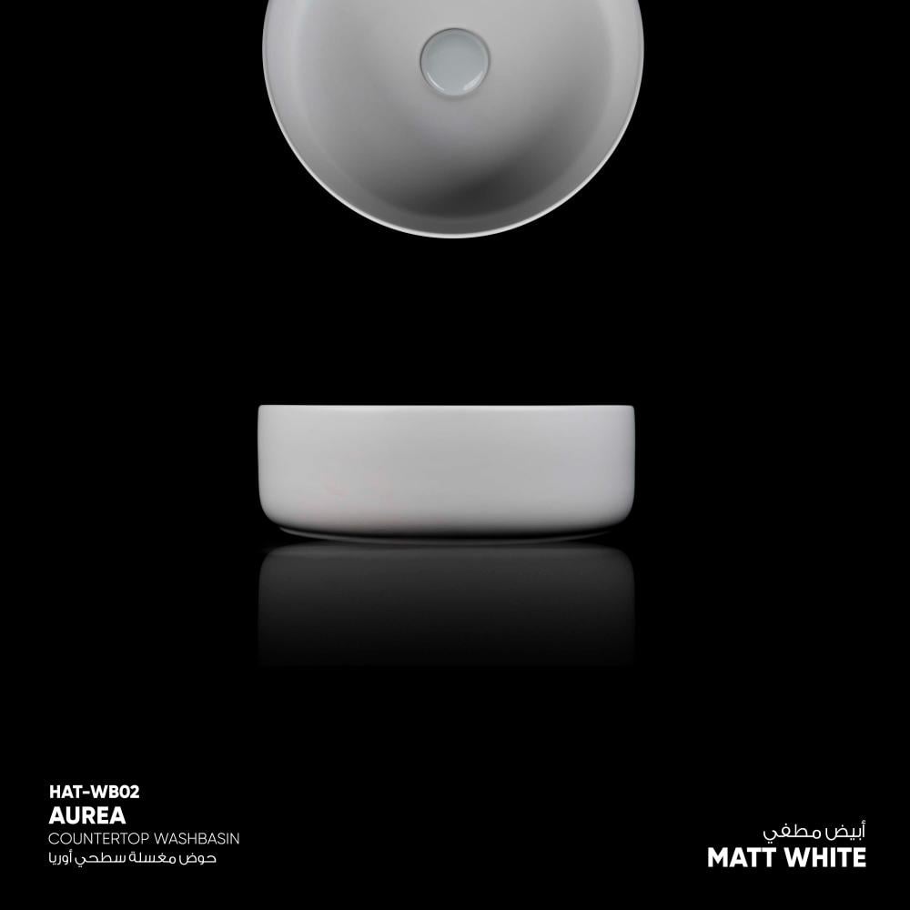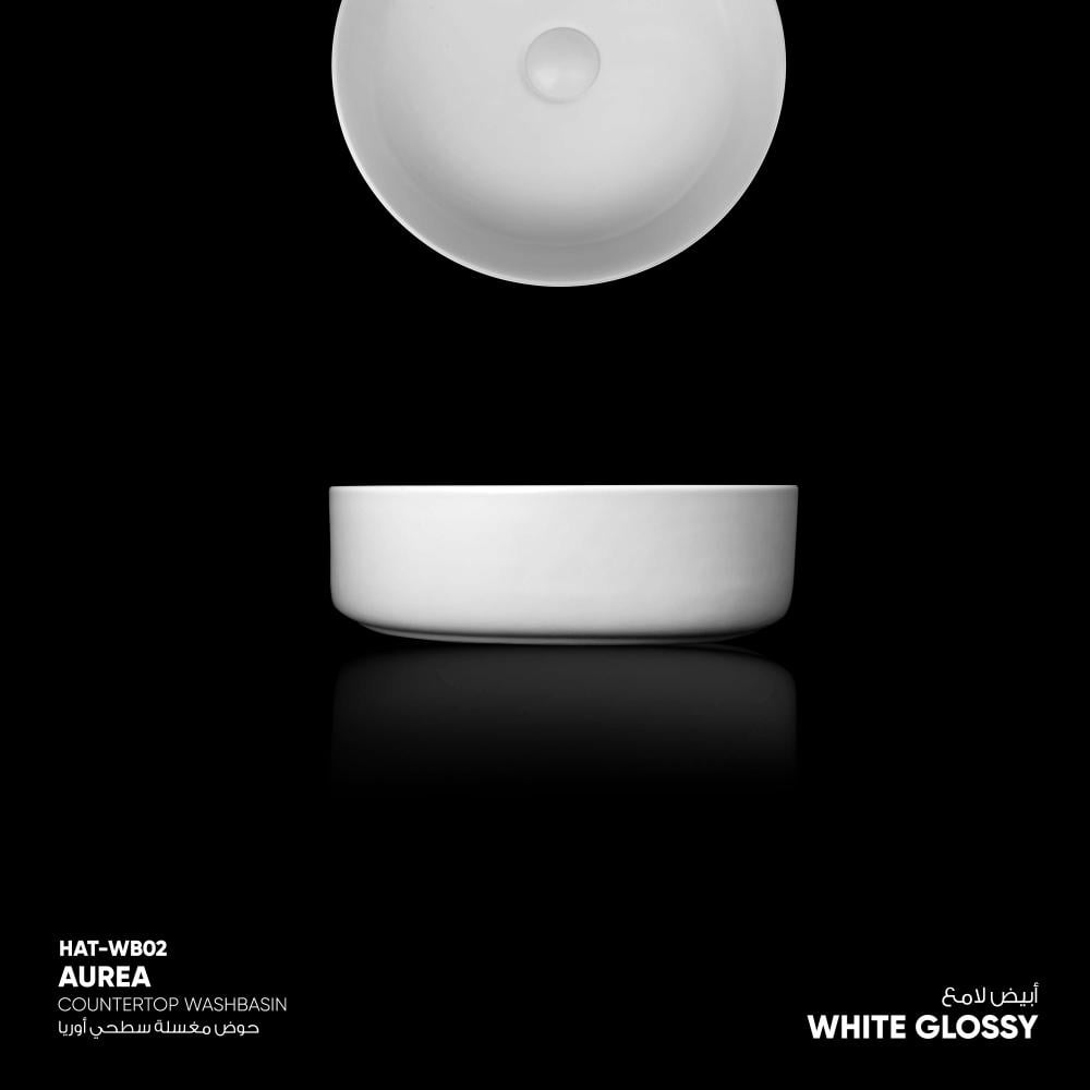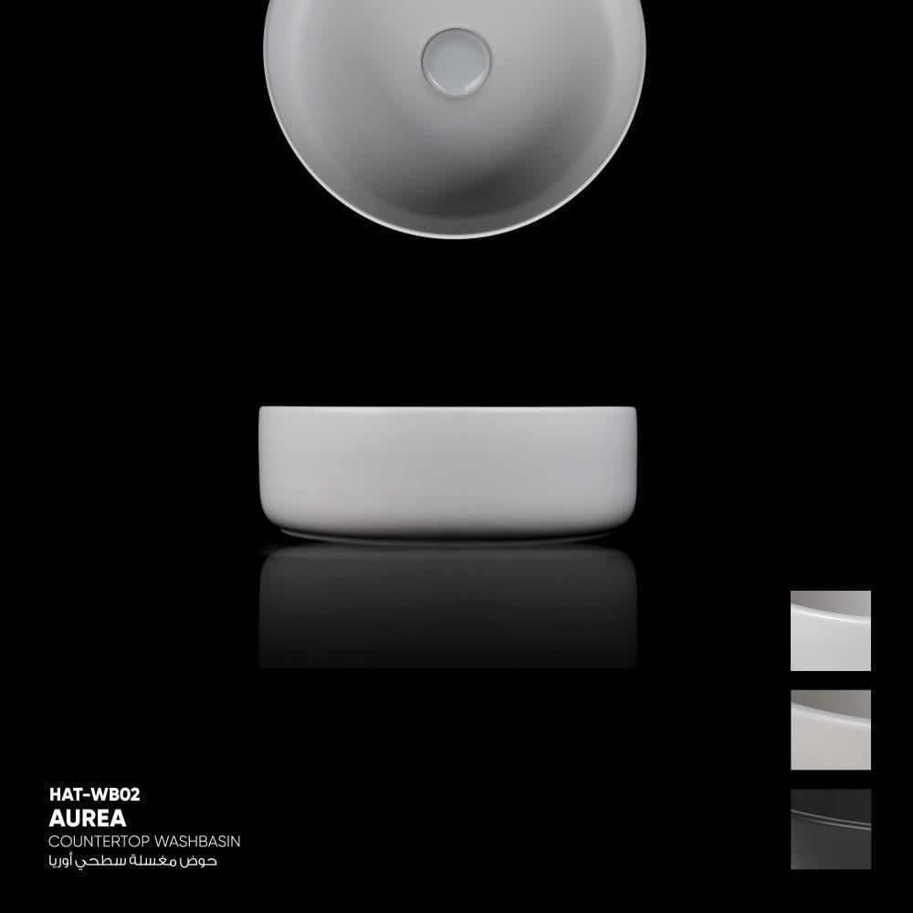 حوض مغسلة سطحي مصنع من الخزف المعالج بالنانو تصميم مستوحى من نبات الأوريا بأوراقها المستديرة والمتناغمة