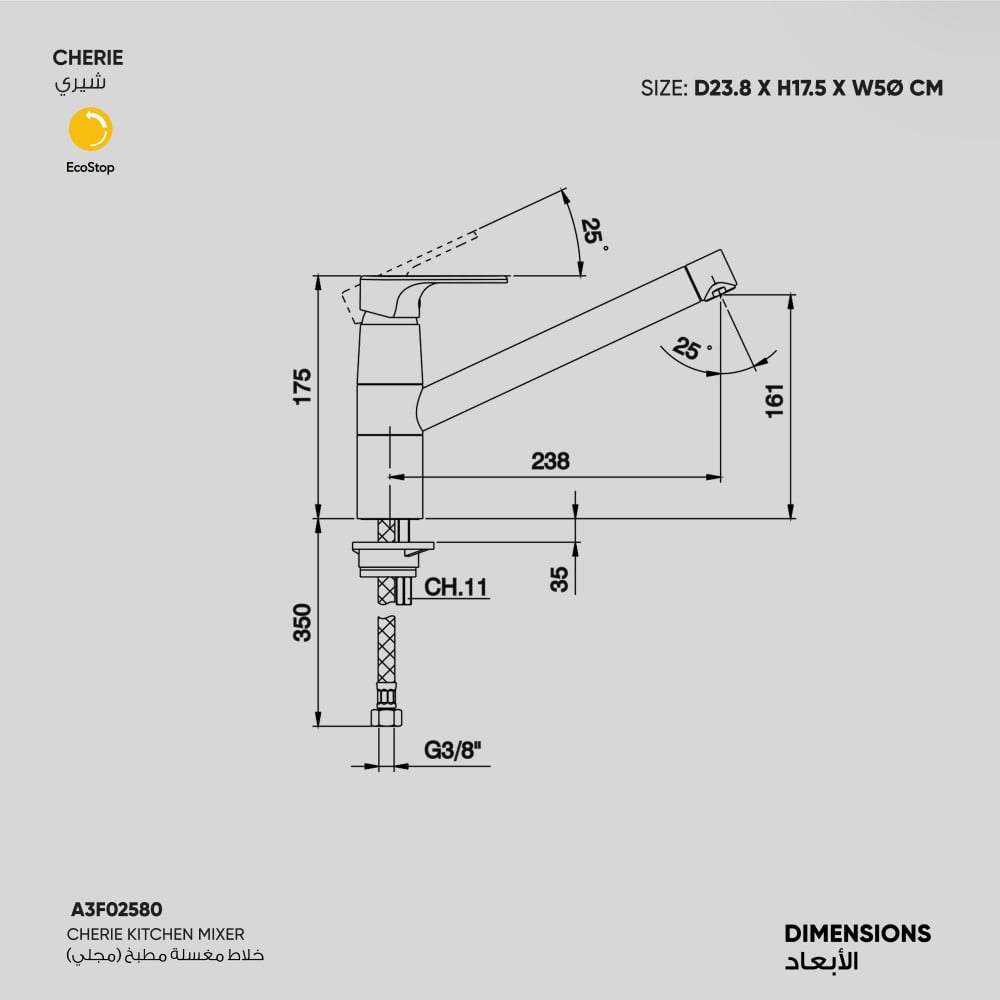 المسافة من السطح الى فتحة الصنبور 21 سم