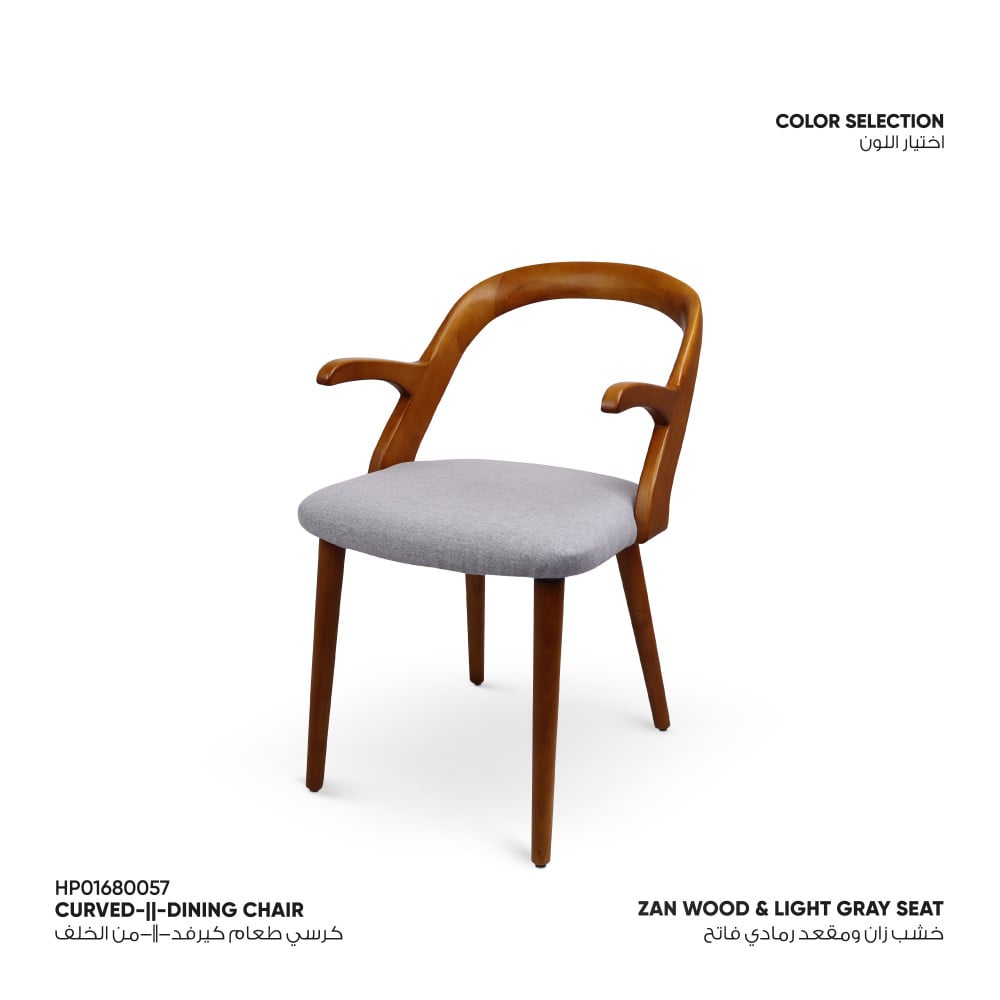كرسي مصمم بشكل جذاب ومنحوت من الخشب المصمت مما يضيف أناقة بسيطة