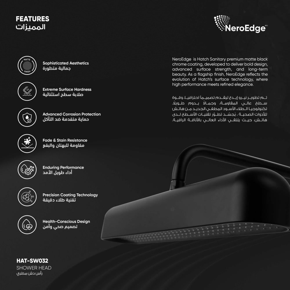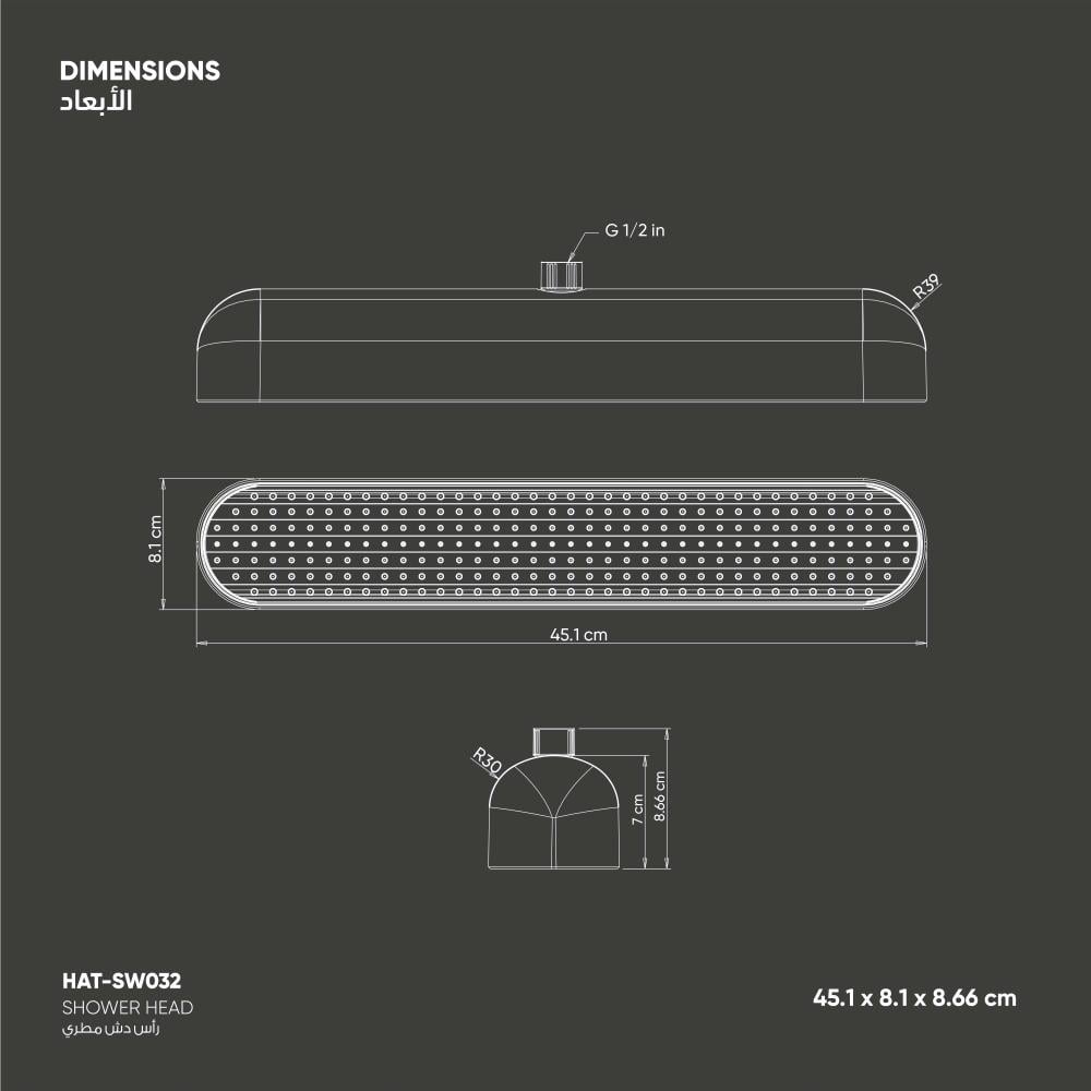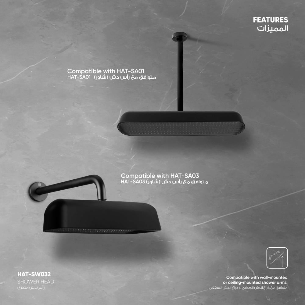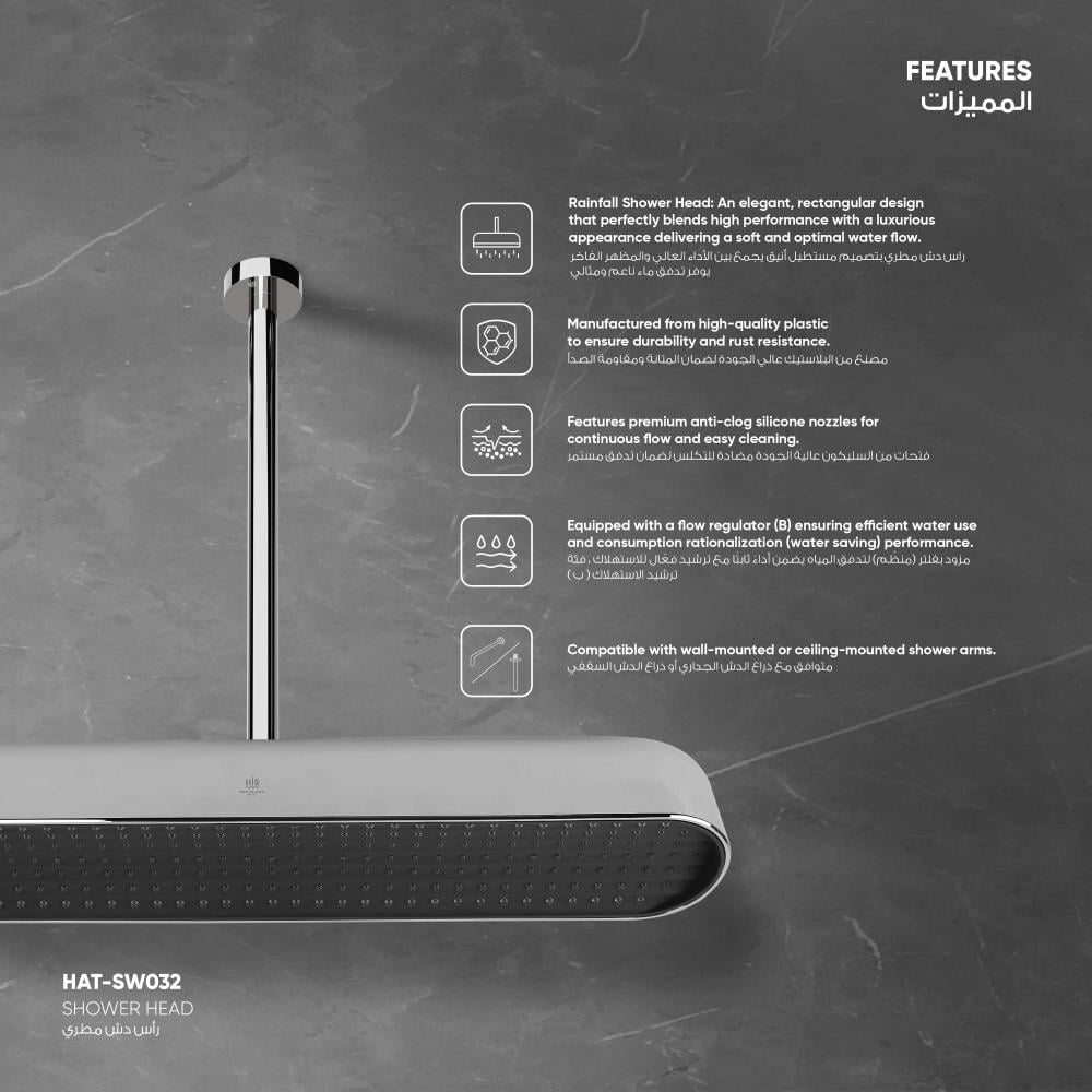- راس دش مطري بتصميم مستطيل أنيق يجمع بين الأداء العالي والمظهر الفاخر يوفر تدفق ماء ناعم ومثالي