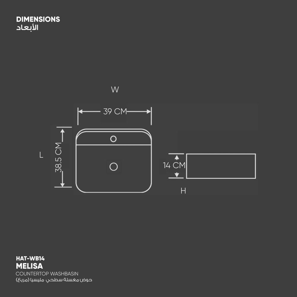 نبذة عن المنتج: يعيد تعريف الأناقة والوظيفة في تصميم الحمام حوض مغسلة ميليسا، حوض صغير وأنيق، مزود بفتحة لخلاط المياه ليتناسب بسهولة مع أي مكان.