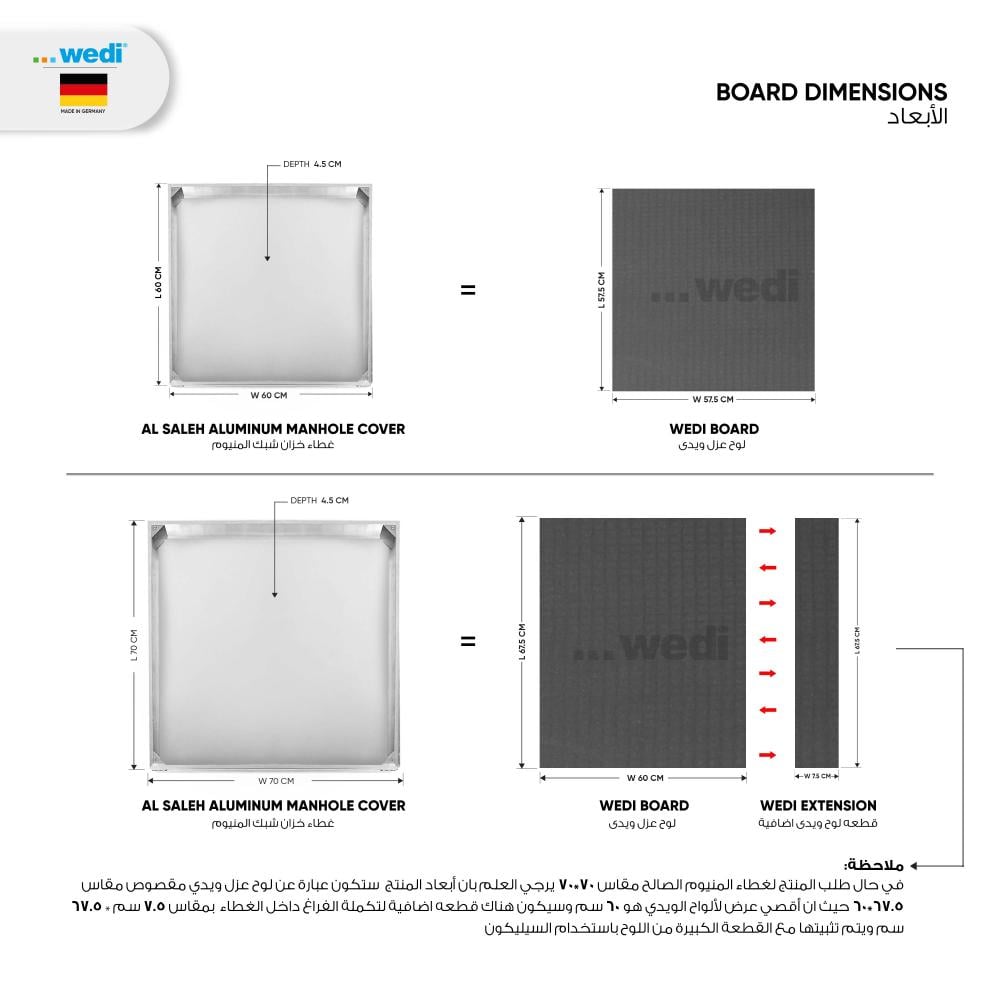 في حال طلب المنتج لغطاء المنيوم الصالح مقاس 70*70 يرجي العلم بان أبعاد المنتج ستكون عبارة عن لوح عزل ويدي مقصوص مقاس 67.5*60